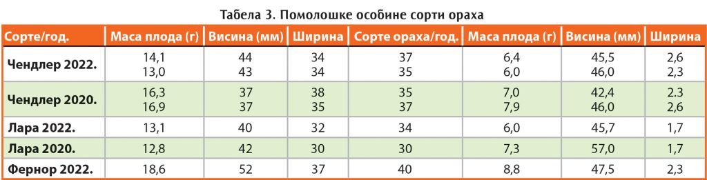Formiranje krune traje 5 do 6 godina i ovakve sorte u punu rodnost ulaze u sedmoj ili osmoj. U šestoj godini ostvaruje se prinos od 1.200 do 1.300 kg u endokarpu, a u četvrtoj ili petoj godini može se očekivati da prihod pokrije troškove proizvodnje pri ceni od 5 €/kg ploda u endokarpu, dok se u osmoj godini može očekivati između 3,5 i 4 tone po hektaru plodova u endokarpu.