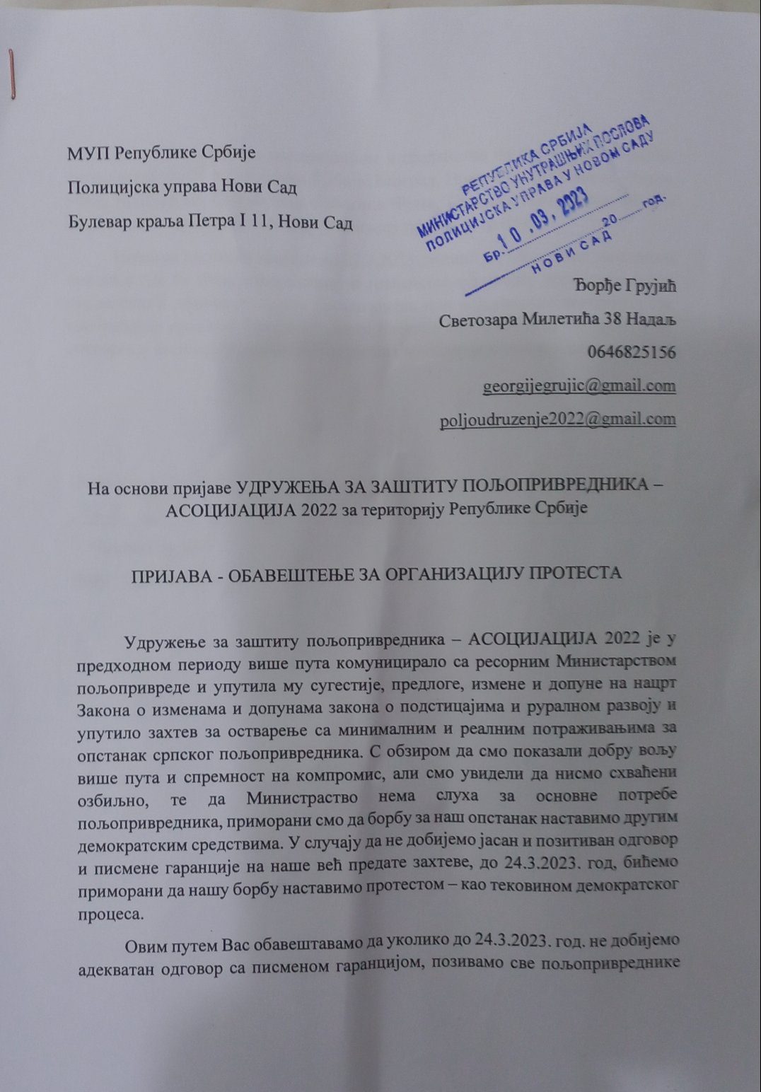 Ono što nije izneto na ovom skupu stočara je da će uslediti mnogo rigorozniji protesti u kome će proizvođači mleka, kako najavljuju, ukoliko im se do 24. marta ne ispune zahtevi, izaći 27.3.2023. godine u 11 časova i blokirati prilaze autoputevima i autoputeve. Ovaj protest je već prijavljen policiji, a iz Udruženja za zaštitu poljoprivrednika „Asocijacija 2022.“ pozivaju sve stočare da sa sobom ponesu sve što im je potrebno za višednevni boravak na putu (ćebad, hranu, vodu). Oni se, kako navode u saopštenju, ovoga puta neće sklanjati.
