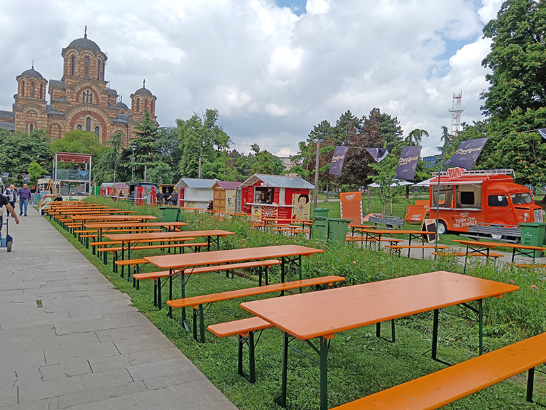 Cene su uglavnom iste kao i u njihovim restoranima, a negde su napravljene i akcije. Inače, dosta sedećih mesta je postavljeno za posetioce i sve će dočarati pravi piknik u parku.