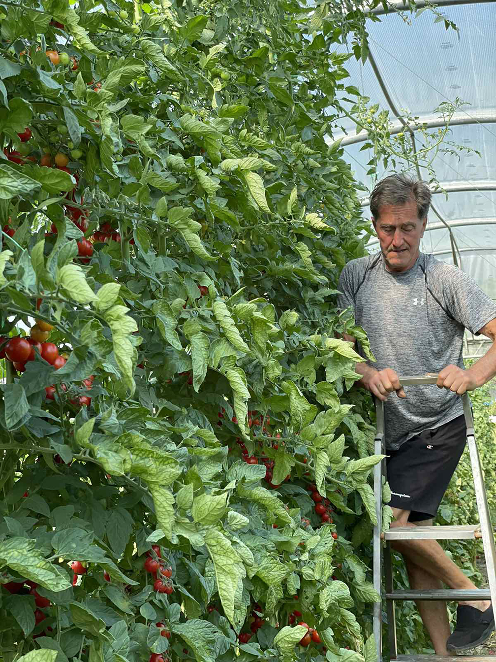 U domaćinstvu Himza Mušovića iz Seljašnice kod Prijepolja raste paradajz „nebu pod oblake“, pa sočne crvene plodove sa  njegovog stabla ovaj vredni povrtar bere uz pomoć merdevina.