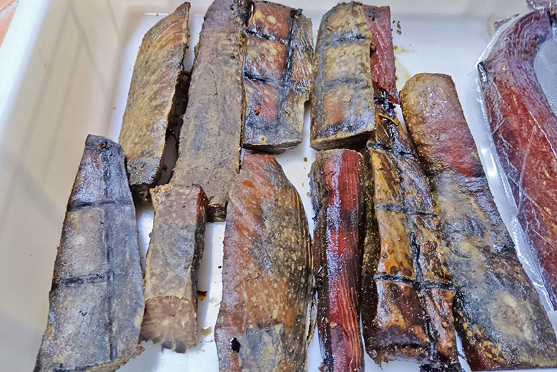 – Suši se nedelju dana. Postoje i ekskluzivniji i veći komadi, ali njima je potrebno od dva do tri meseca. Treba razlikovati dimljenu i sušenu ribu. Dimljena nije ujedno i osušena. Ona je samo hladno nadimljena, primila je aromu, ali je i dalje u relativno svežem stanju, te joj je potrebna dodatna termička obrada.