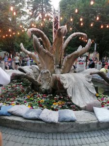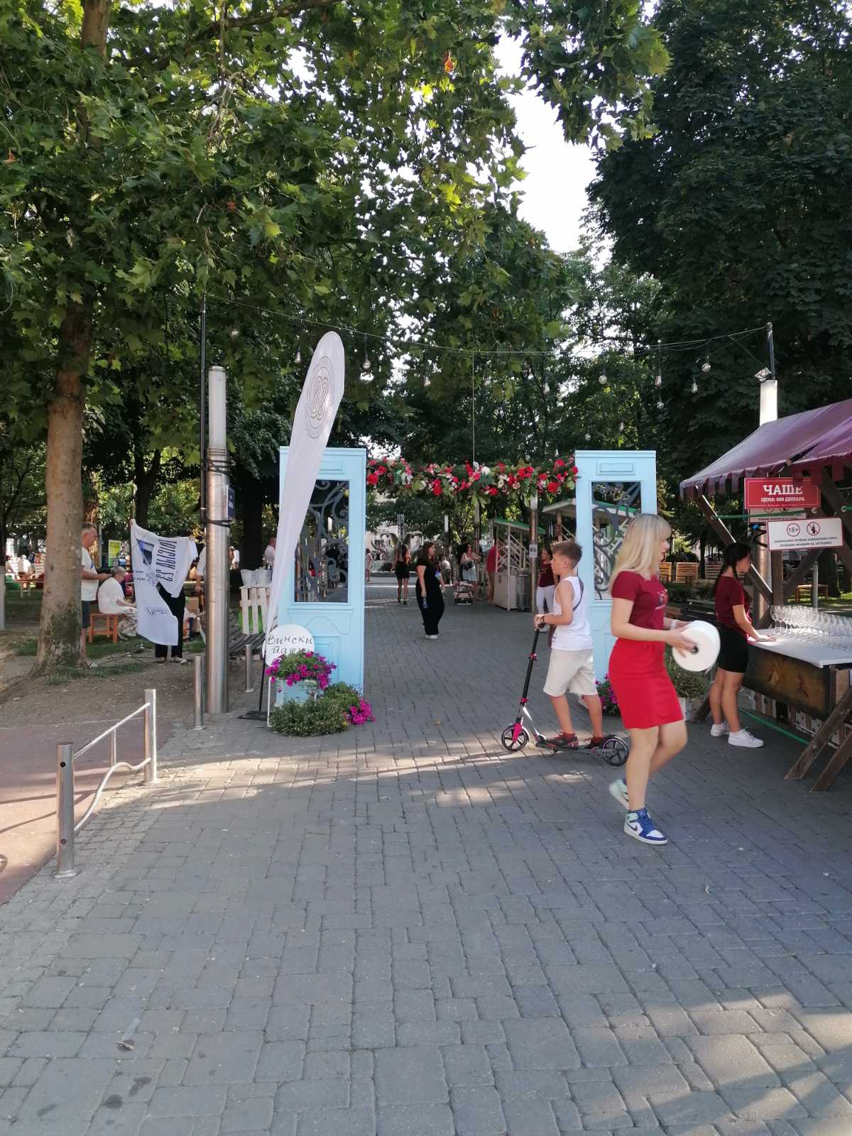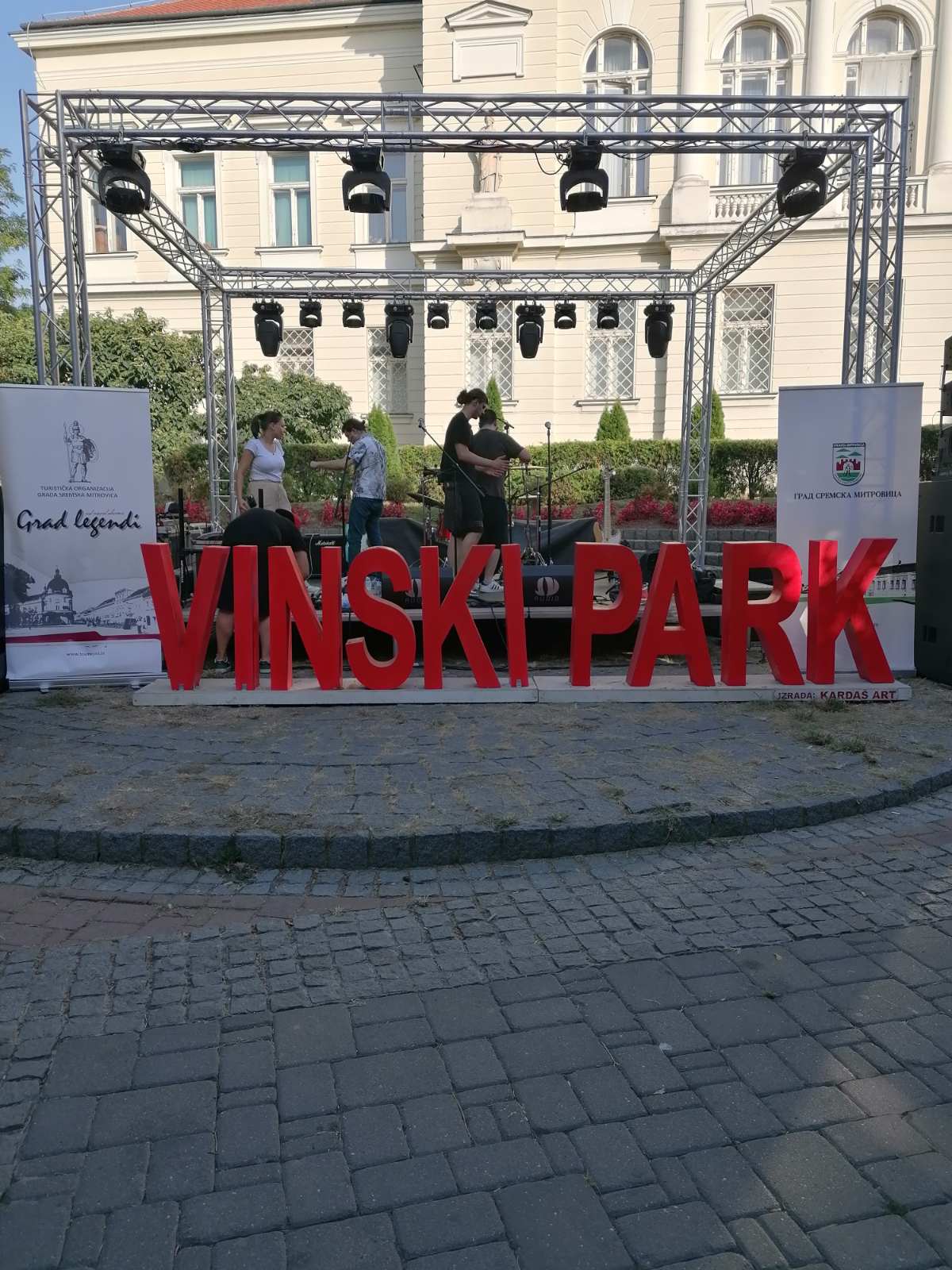 Na prevrelom suncu, u mlakoj hladovini Gradskog parka u Sremskoj Mitrovici, u organizaciji Grada Sremska Mitrovica održava se festival u čast vina, Vinski park.