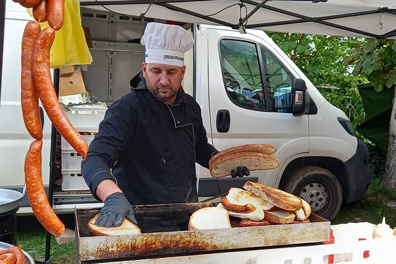 Lazar Kupreški iz Novog Sada prvi put učestvuje na Oplenačkoj berbi i odmah je pobrao simpatije Šumadinaca metarskim veknama hleba u čiju kršku vešto pakuje kobasice koje sam pravi. Iako su ga posle Kobasicijade u Turiji prozvali srpskim kraljem kobasica, u Topoli su najviše zagledali hleb.
