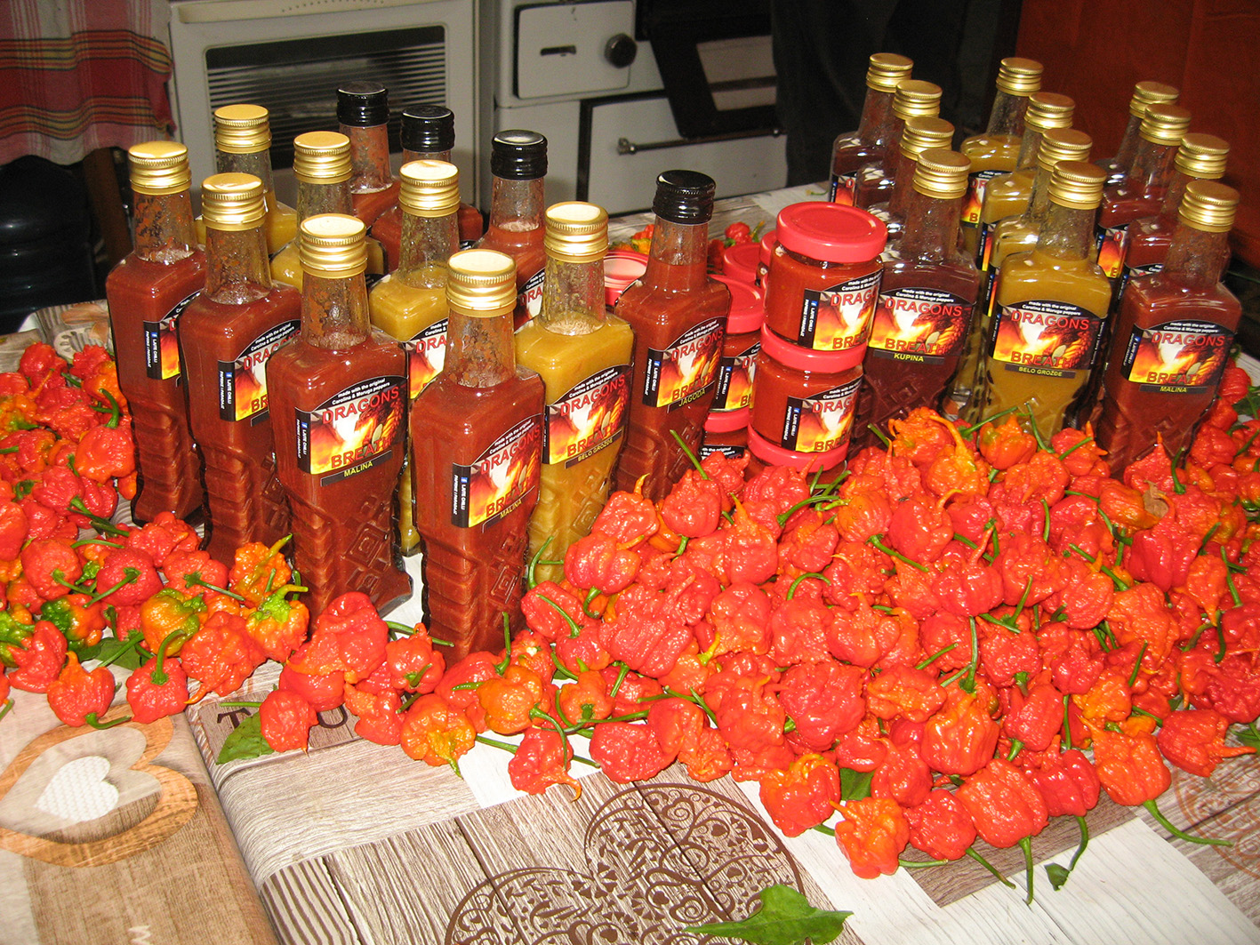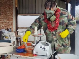 – Karolina riper je do ove jeseni zvanično bila najljuća papričica na svetu sa 2,2 miliona Skovila. Ljutina se meri po količini kapsaicina, glavne aktivne materije, koja daje ljutinu. Poređena radi, makedonska vezenka ima 40.000 Skovila. Kosač je dakle 55 puta ljući i to se bukvalno oseća u vazduhu. Zato pulpu pravim na terasi, a kuvam u prostoriji sa otvorenim vratima i visokim plafonima. Međutim, ni to nije dovoljno. Potrebna je gas maska i dobra zaštita za svaki deo kože – kaže Živojin Antić za Dobro jutro.