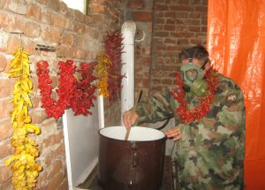 I zaista, ljutina se oseća u vazduhu. Nije preporučljivo biti blizu smese ni kada se melje, a pogotovu kada se kuva na šporetu bez zaštite. Prvi simptomi su blagi kašalj, kijanje, a potom kapsaicin, koji je stabilan na visokim temperaturama, tera ljute suze na oči. Ako koža upije ovu materiju, ona može i do tri dana da se zadrži u porama.