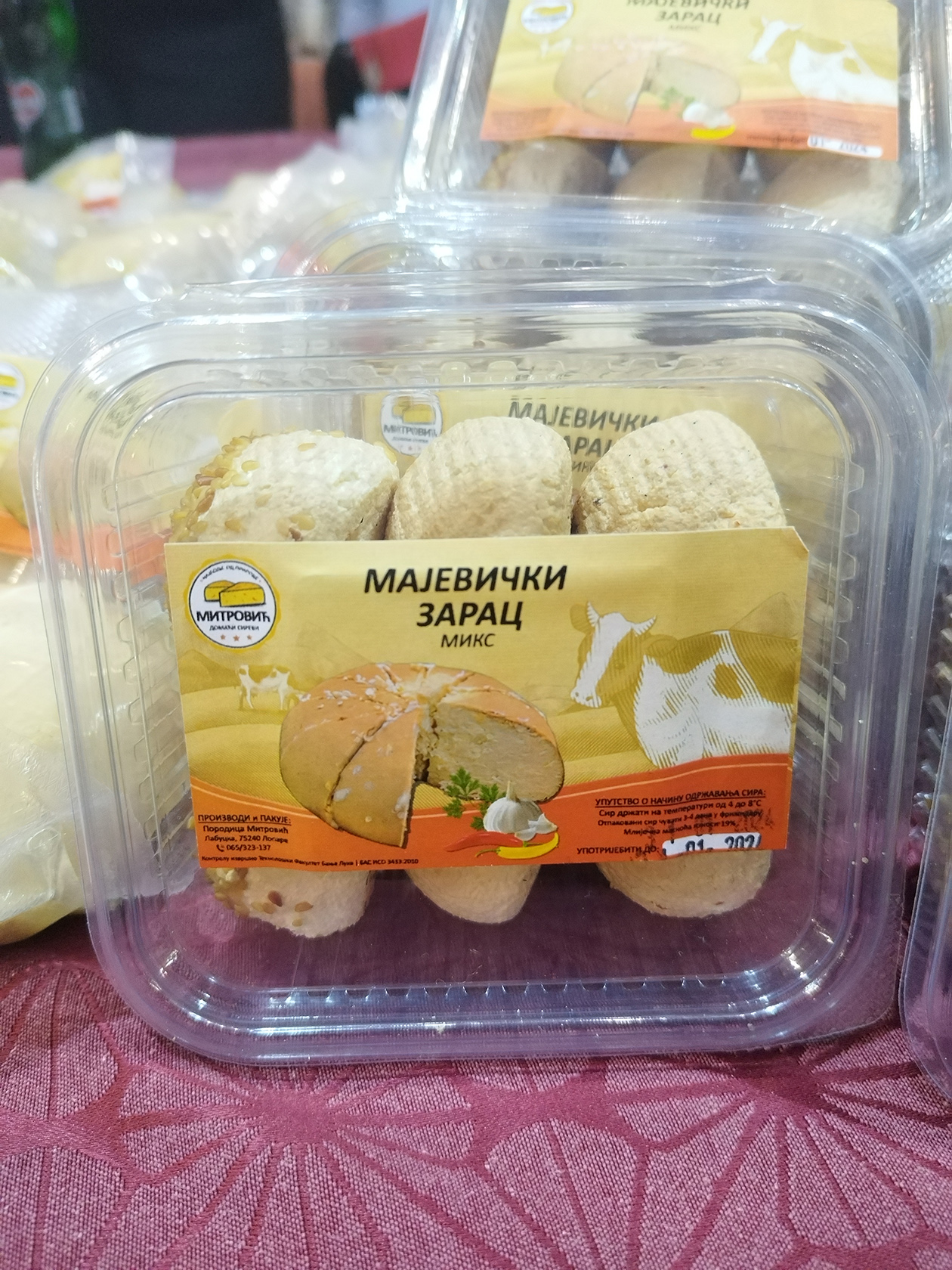 – Za jedan masni sir od kilogram i 700 grama ide 12 litara mleka punomasnog sa kajmakom. Posle ga sečete na četvrtine i pakujete. A za Zarac, uh, od kilogram mladog sira dobije se tri pogačice. Za kilogram mladog sira vam treba osam do deset litara mleka. Pa, sad vidite koliko je to mleka za ta taj paket koji mi prodajemo od šest pogačica – sve ovo je moguće jer imaju svoje krave i svoju pašu, da nije tako ne bi se isplatilo, već bi bili na gubitku.