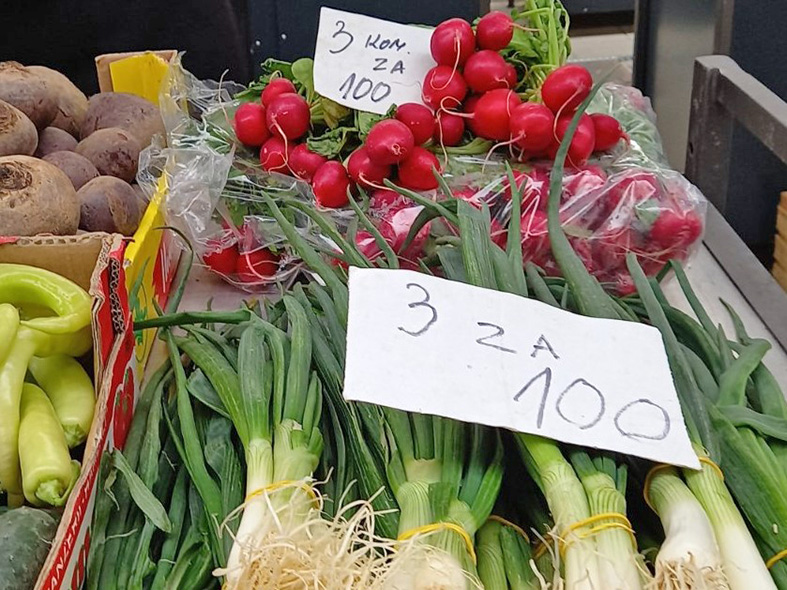 Veza mladog luka je od 40 do 50 dinara. Zelena salata je od 25 do 50 dinara u zavisnosti od veličine glavice. Zelje se prodaje od 50 dinara za deset listova u vezi, pa do 80 dinara onih od kojih se prave sarmice.